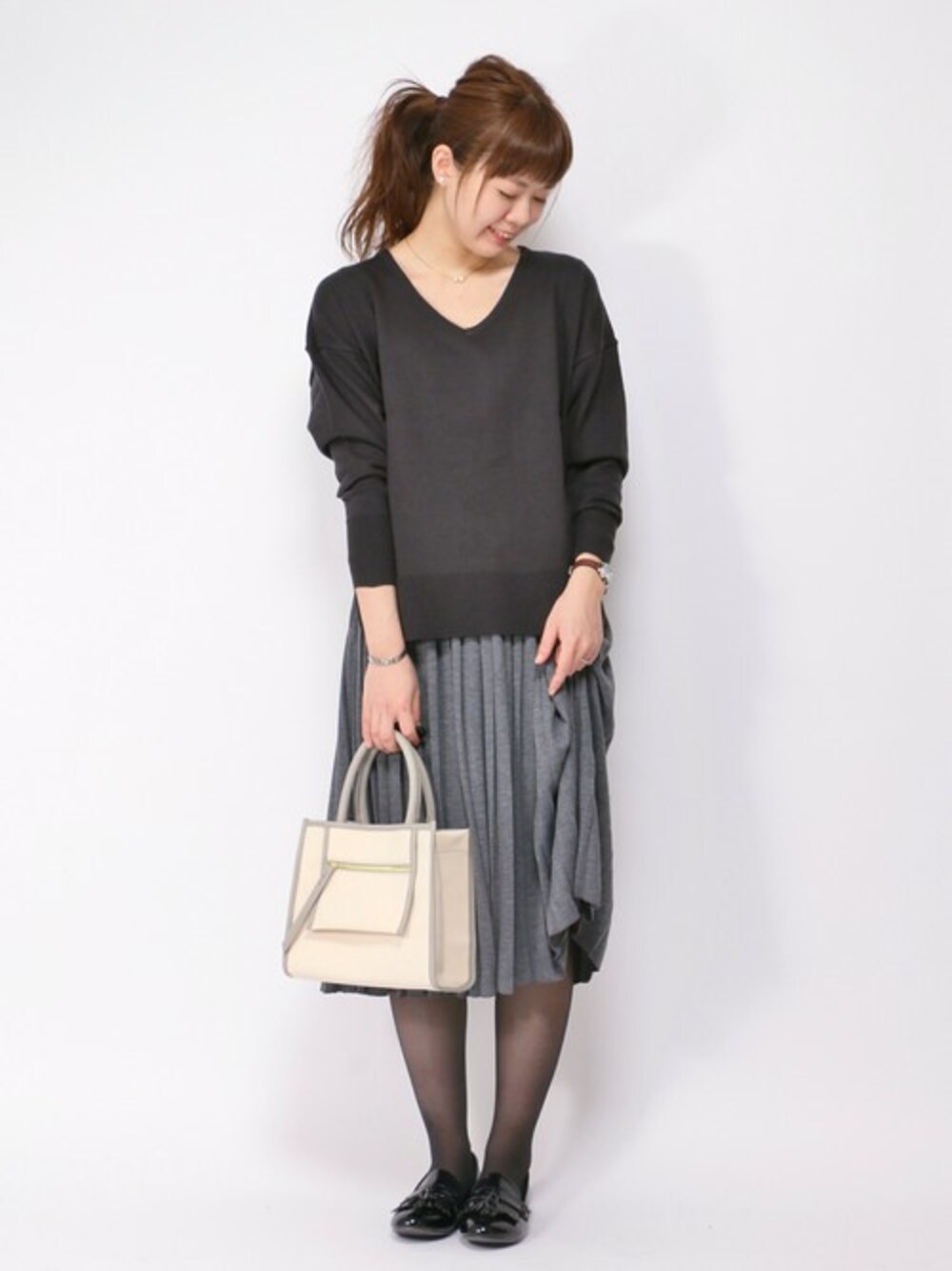ゆるっと大人なモノトーンスタイル。 スカートはカット素材なので、程良くカジュアルに★
