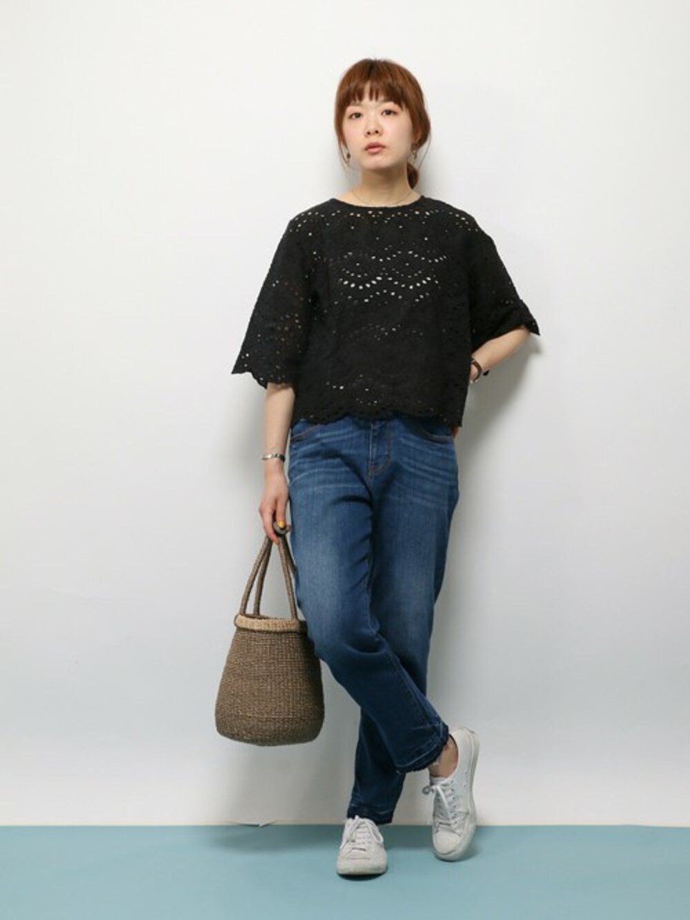 涼しげな総レースのブラウス。 軽くて薄手の素材です。 短めの着丈なので ボトムはデニムなどカジュアルなものと相性◎です!