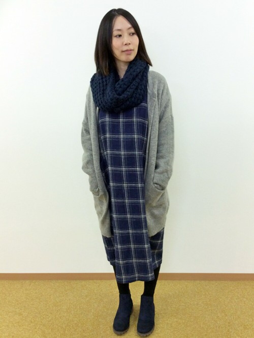 らくちんロング×ロングコーディネートです。 ワンピースは、ゆったりとしたシルエットと温かみのある起毛素材の季節感がおすすめです。 きちんと裏地も付いているので一枚でパッと着れるのもうれしいポイント。 ロング丈のカーディガンはシンプルながらゆったりの丸みのあるシルエットで、羽織るだけで今年らしいボリュームのあるコーディネートに仕上がります。 丈が長めなので暖かい日にはアウター代わりにも♪