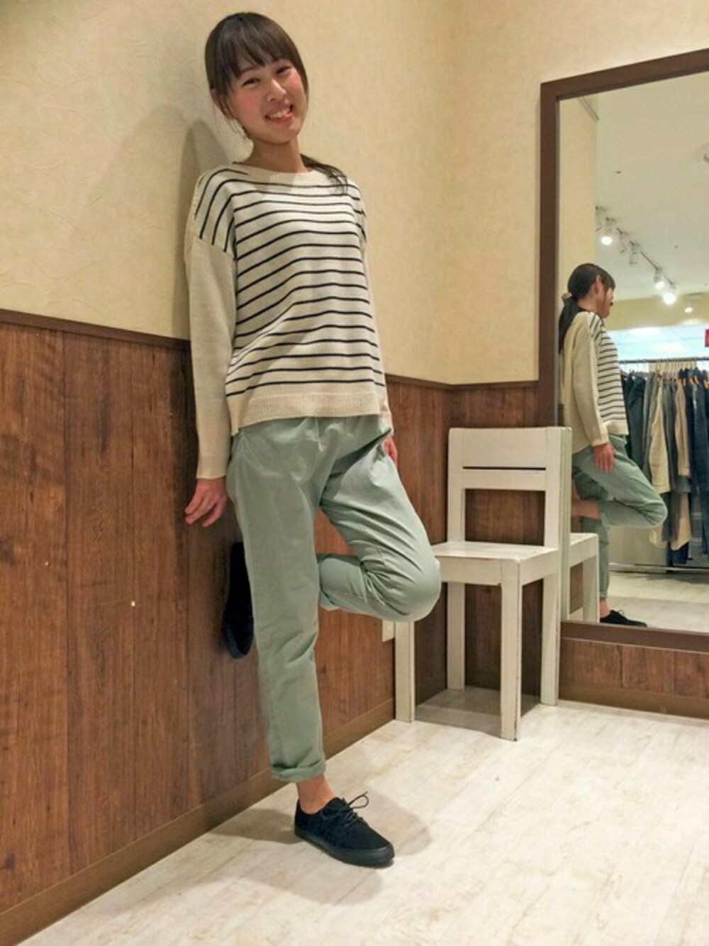 いずみんのニット/セーター「5Gボーダー裾ラウンドプルオーバー 」を使ったコーディネート