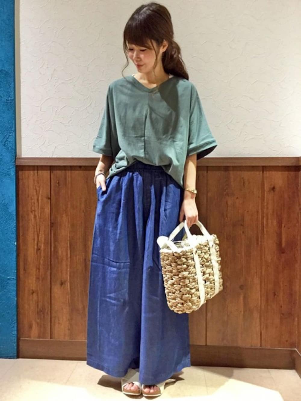 夏の休日におすすめのリラックスコーデ。 オーガニックコットンをブレンドした上質Tシャツは、今年らしいゆったりのドルマンスリーブがポイントです。 らくちんウェストゴム&薄くて軽いテンセルデニムのイージーパンツとあわせてラフな雰囲気に♪