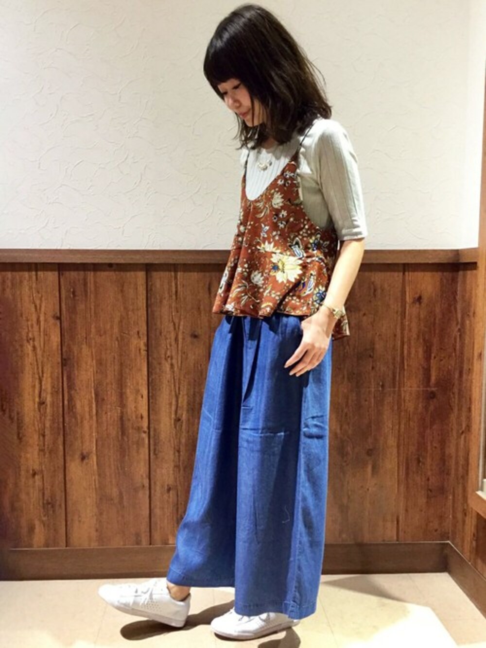 MANO(LBC marketイオンモール倉敷店)のキャミソール「メキシカンフラワープリントキャミソール 」を使ったコーディネート