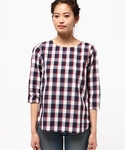 初夏のお出かけコーディネート。 パリッと爽やかな素材感のチェック柄ブラウス。 Tシャツ感覚で気軽に使えるうえにブラウスのようなきちんと感もあるので、1枚でコーディネートがキマります♪ ホワイトのガウチョパンツにトップスインして、今年らしさを出してみました。