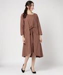 リラックスした雰囲気のナチュラルコーディネートです。 ほんのり起毛した素材のピンクのワンピースは、素材の優しげな風合いとゆるいAラインシルエットが一枚で主役になれるアイテム。 インには、ホワイトカラーやハイネックデザインをあわせるとメリハリのある印象になります。