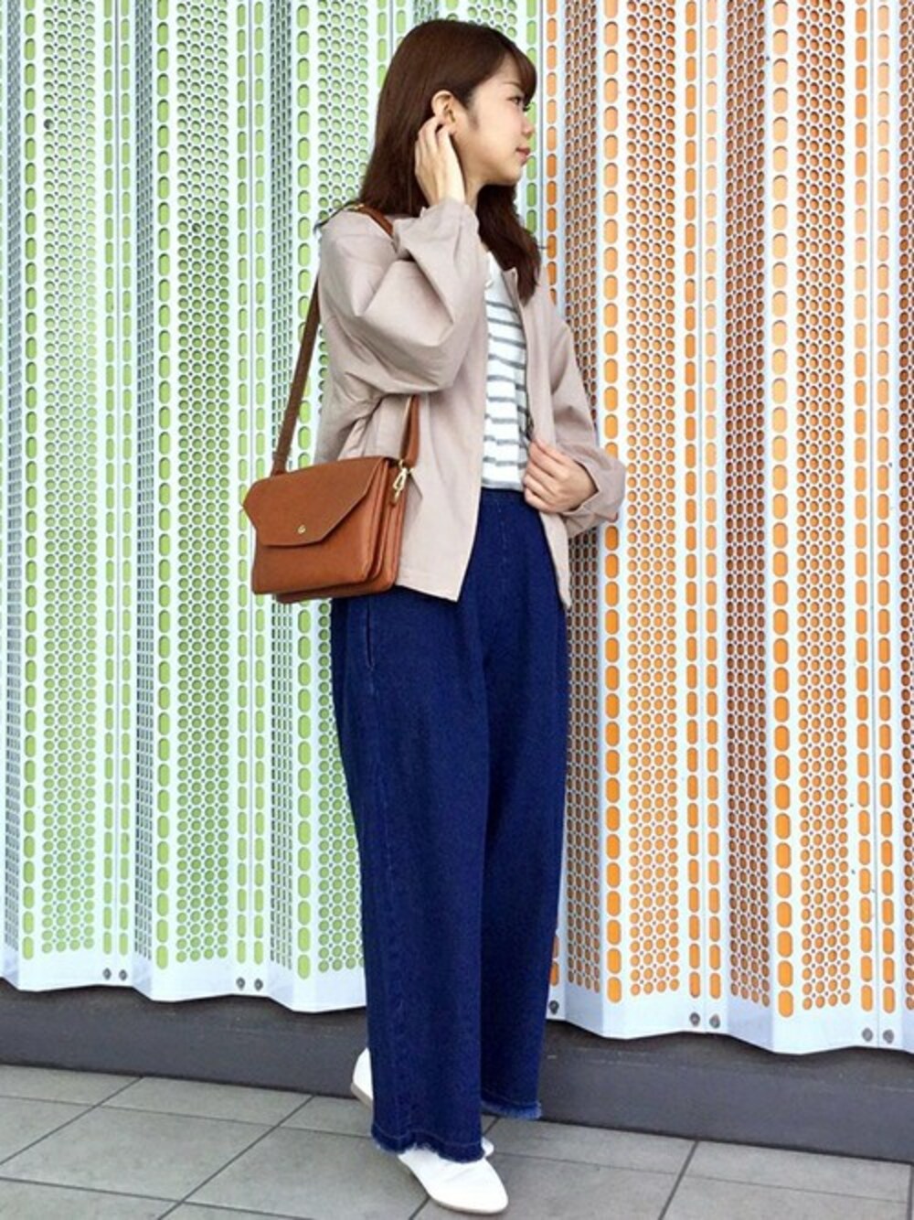 MANOのブルゾン「ノーカラーコクーンスリーブブルゾン」を使ったコーディネート