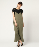 やさしいカラーが大人の女性らしいキャミソールタイプのサロペット。 ボトムはガウチョ風のワイドシルエットですが、サイドに深めのスリットを入れて軽さを演出しています。 インにブラックをあわせると引き締まったシルエットに♪