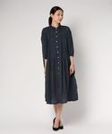 製品染めならではの風合のあるワンピース。 ワンピースとして着用するのはもちろん、さらっと羽織るアレンジもおすすめ。 ティアードのディティールをプラス今年らしい顔にしました。