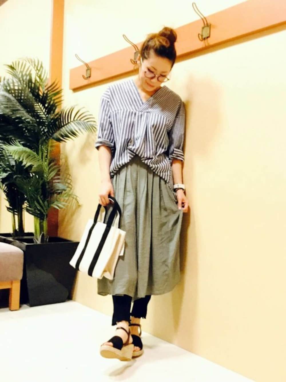 KAOのシャツ/ブラウス「ツートンストライプVネックシャツ」を使ったコーディネート