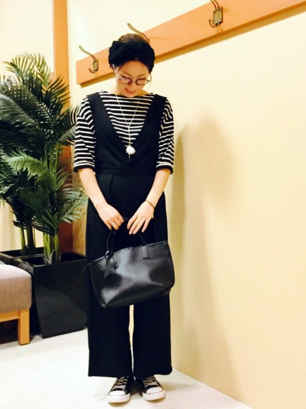 前後どちらもV開きで、すっきりと大人っぽく着こなせるサロペット。 中に着るアイテム次第で調整が効くサロペットは、気温が安定しない端境期にとっても便利です♪ バックスタイルは大き目リボンをワンポイントにして、後ろ姿もぬかりなく。 後ろウエストはゴムに切り替え、ゆったりラクちんな着心地です。