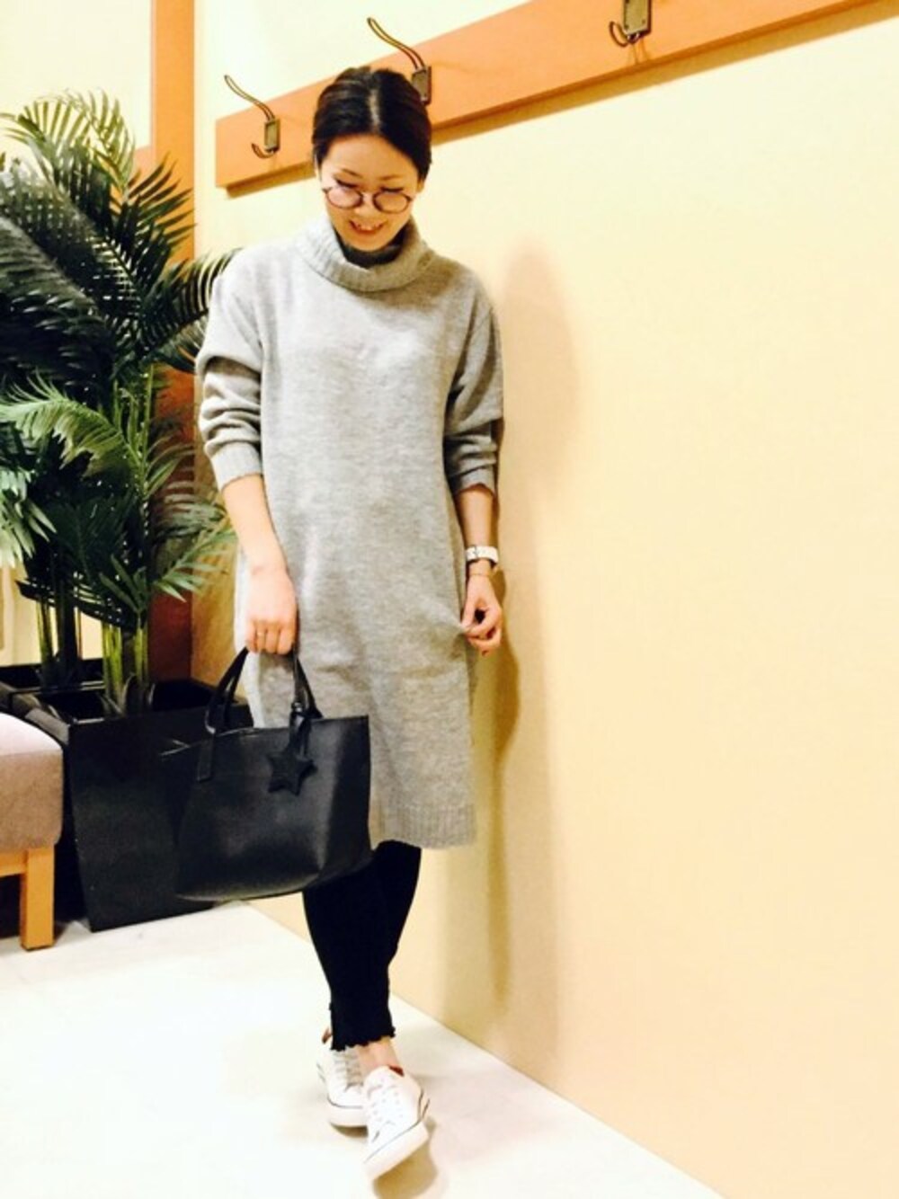 KAOのワンピース「7Gタートルコクーンニットワンピース」を使ったコーディネート