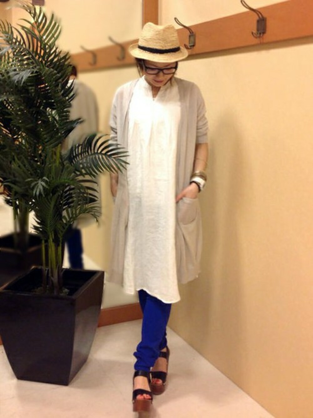 ロング×ロングのコーディネートです♪ シロのノースリーブワンピは、リネン素材でさらりとした着心地です。 トレンドのロング丈のカーデを羽織ると今年らしさがUP! トップスがナチュラルカラーなので、濃いめのカラーパンツで引き締めるのがおすすめです。