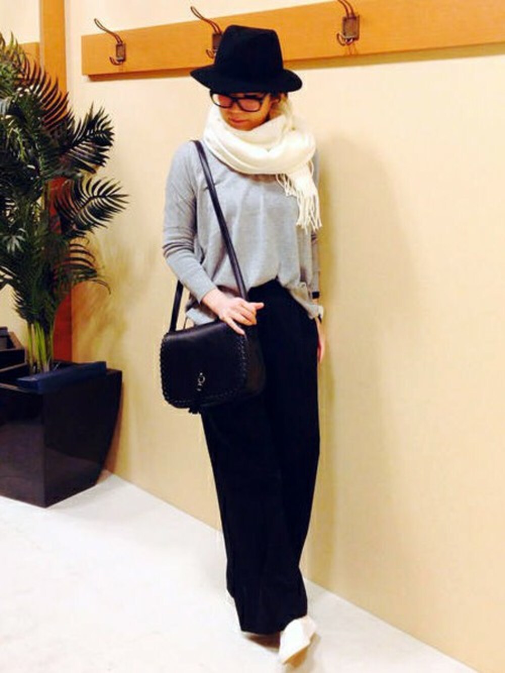 大人かっこいいモノトーンコーディネートです。 アクリルコットン素材のニットは、やわらかくて春らしい雰囲気の一枚。 シンプルなので着回しやすいのもうれしいポイントです。 今回は、トレンドのワイドパンツとトップインであわせてみました。 白×黒もグレーを挟むとやわらかい印象になるのでおすすめです♪