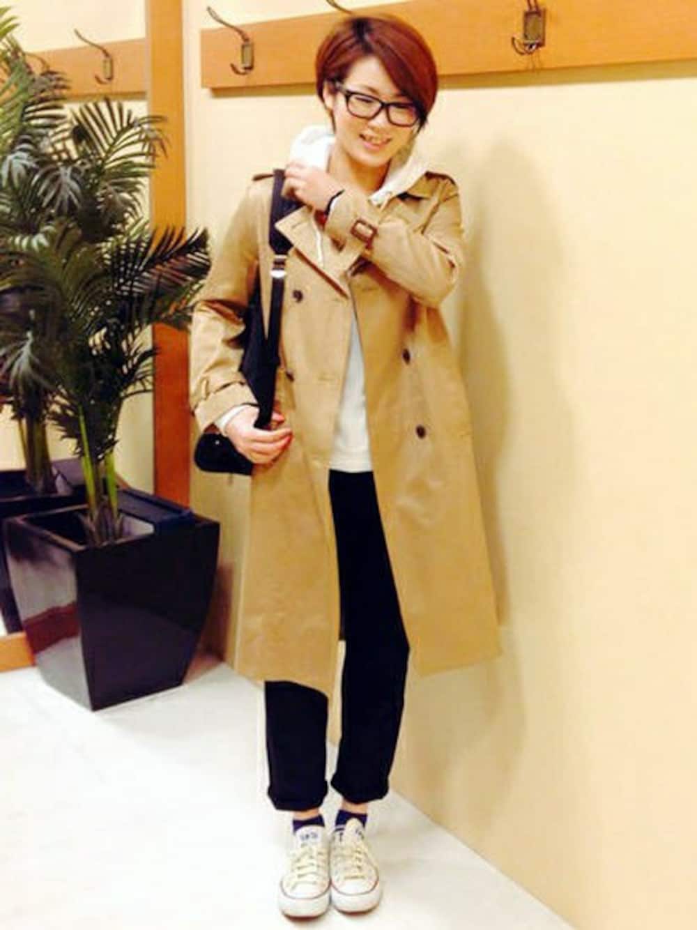 定番トレンチコートをカジュアルダウン。 今年は、トレンチコートをカジュアルアイテムとあわせて着こなすのがおすすめです。 パーカー×パンツのシンプルスタイリングに羽織るだけで、今年らしい着こなしに♪ 小物も、スニーカーやリュックなどスポーティなアイテムをプラスしました。