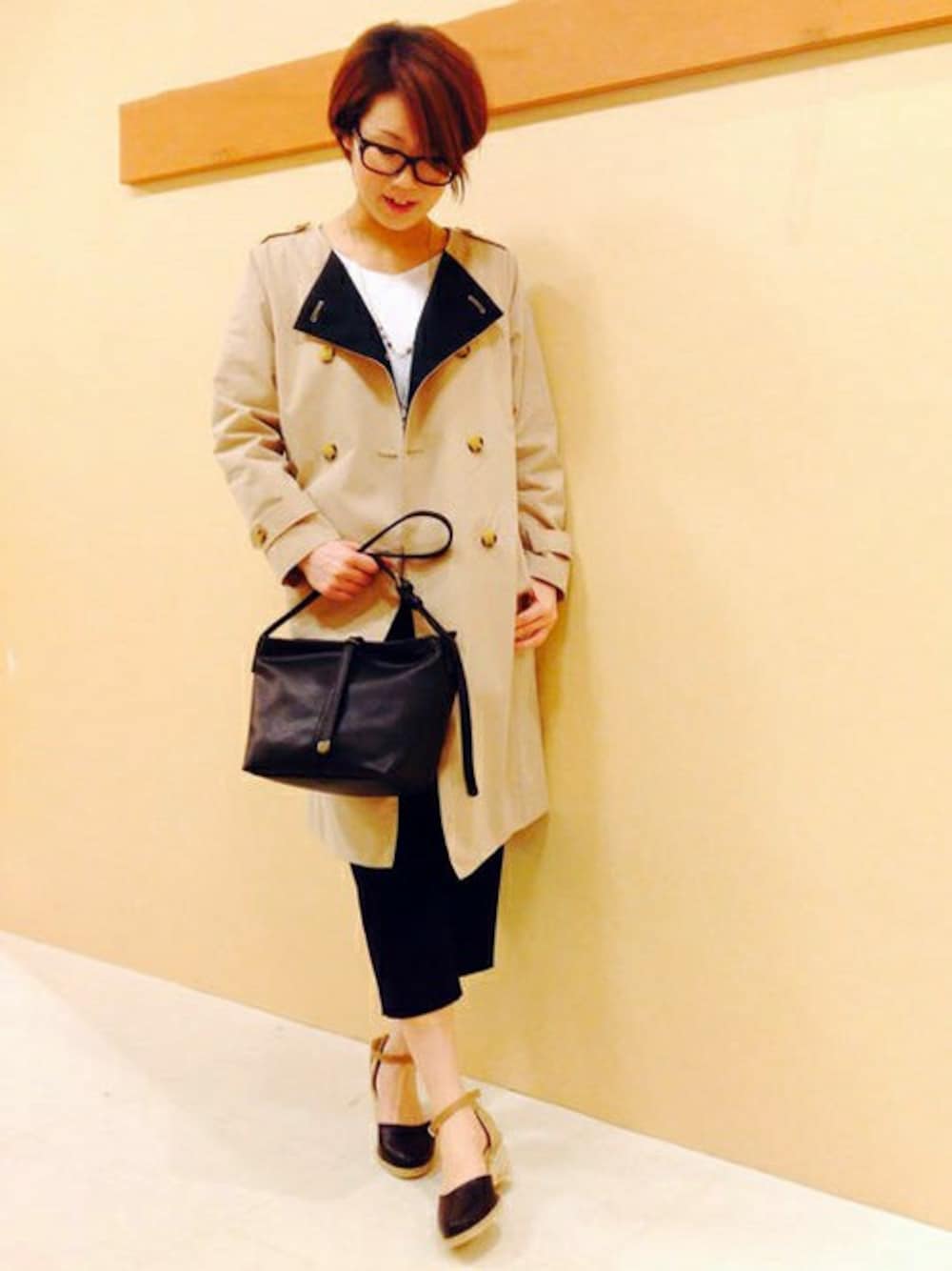 通勤からちょっとしたお出かけにおすすめのきれいめパンツスタイル。 春の定番トレンチコートも、ノーカラーデザインでまたちがった雰囲気が楽しめます。 インはシンプルながらも、裾が布帛使いのトップス&ワイドシルエットのクロップドパンツとこだわりのアイテムで揃えました♪