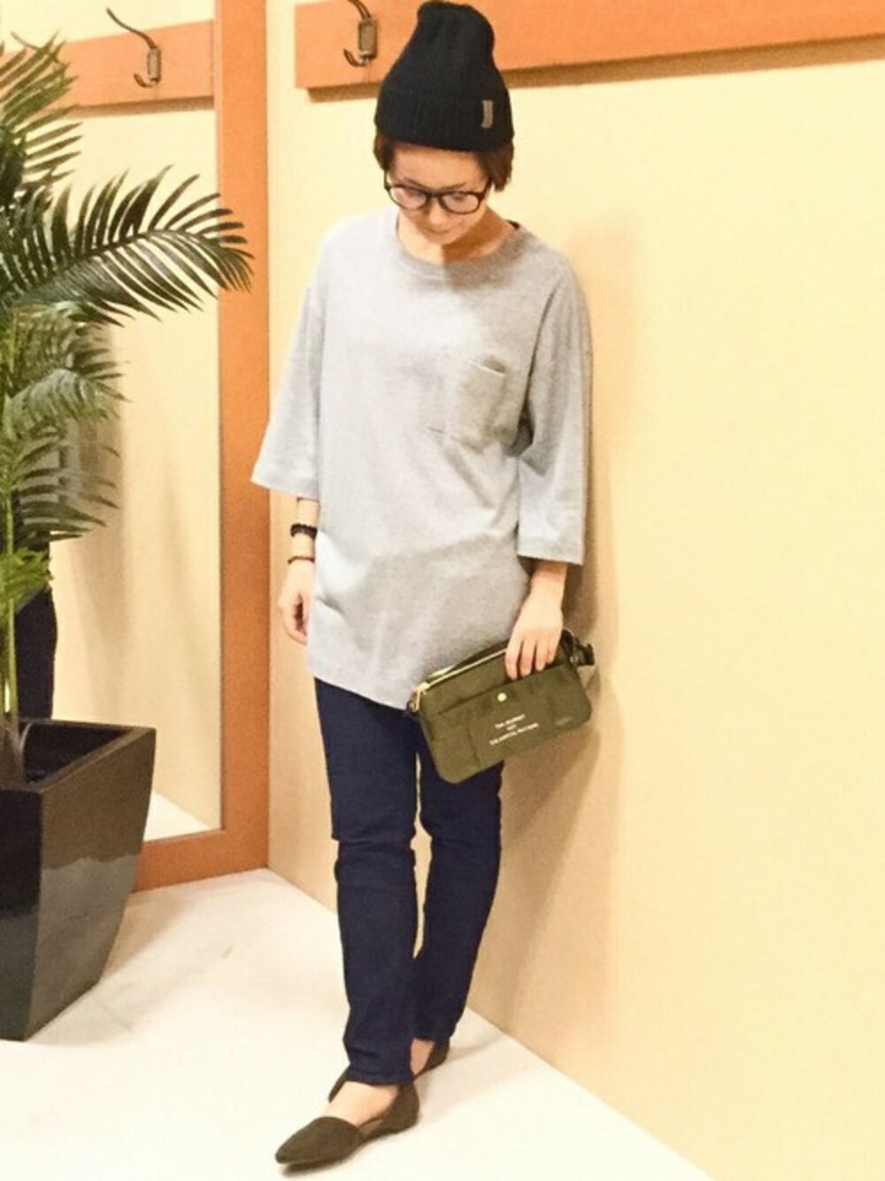 ゆったりチュニックを使ったゆるピタコーディネート。 シンプルなデザインでポケットがアクセントになってます。 細身のパンツとの相性◎