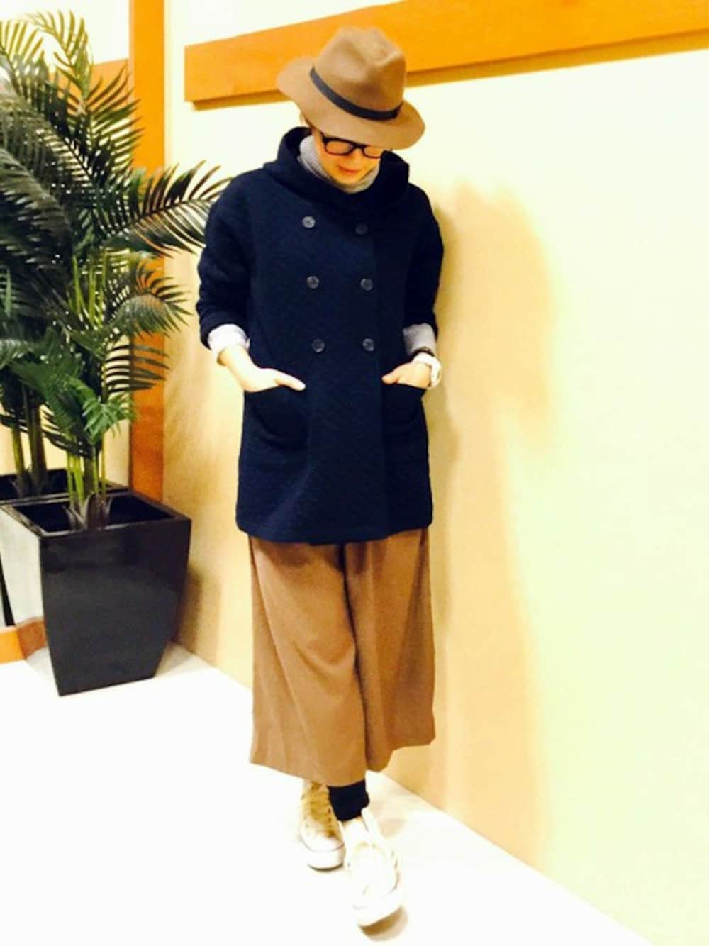 KAOのその他アウター「中綿キルティングフードダブルコート」を使ったコーディネート