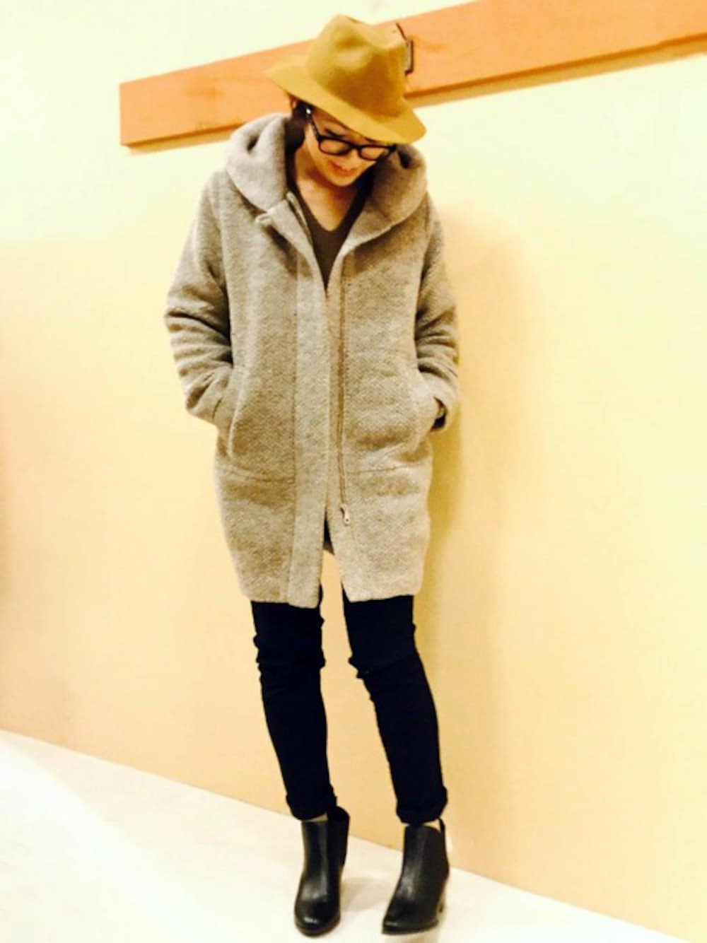KAOのその他アウター「スライバーフードコート 」を使ったコーディネート