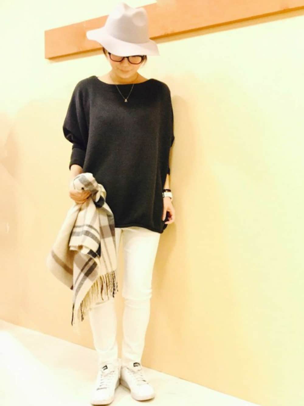 グレー×ホワイトのやさしいモノトーンコーデ。 ホワイトパンツはいつ着てもすっきりとした気持ちになりますね♪ ゆるっとしたトップスをあわせると、大人の女性らしい雰囲気に。