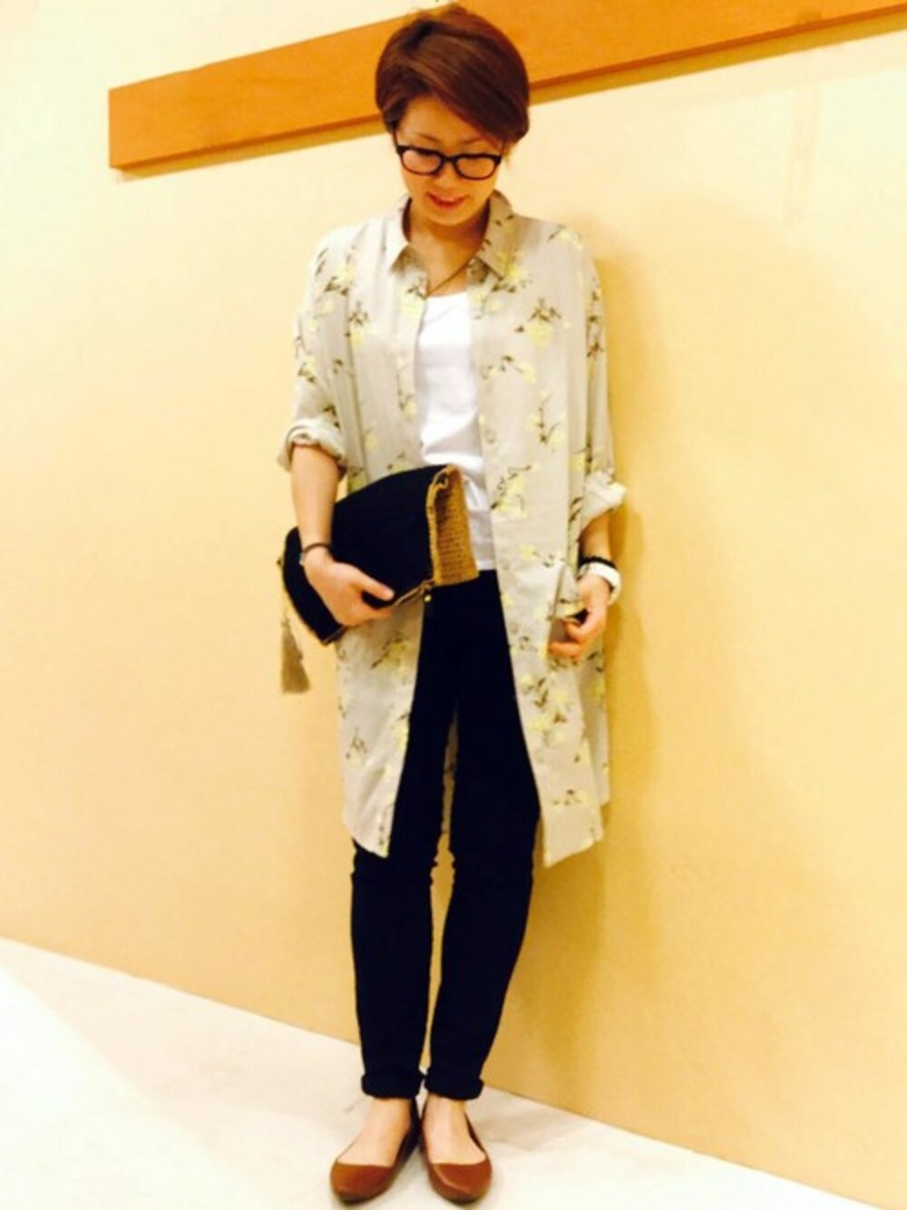 KAOのシャツワンピース「フラワープリントシャツワンピース」を使ったコーディネート