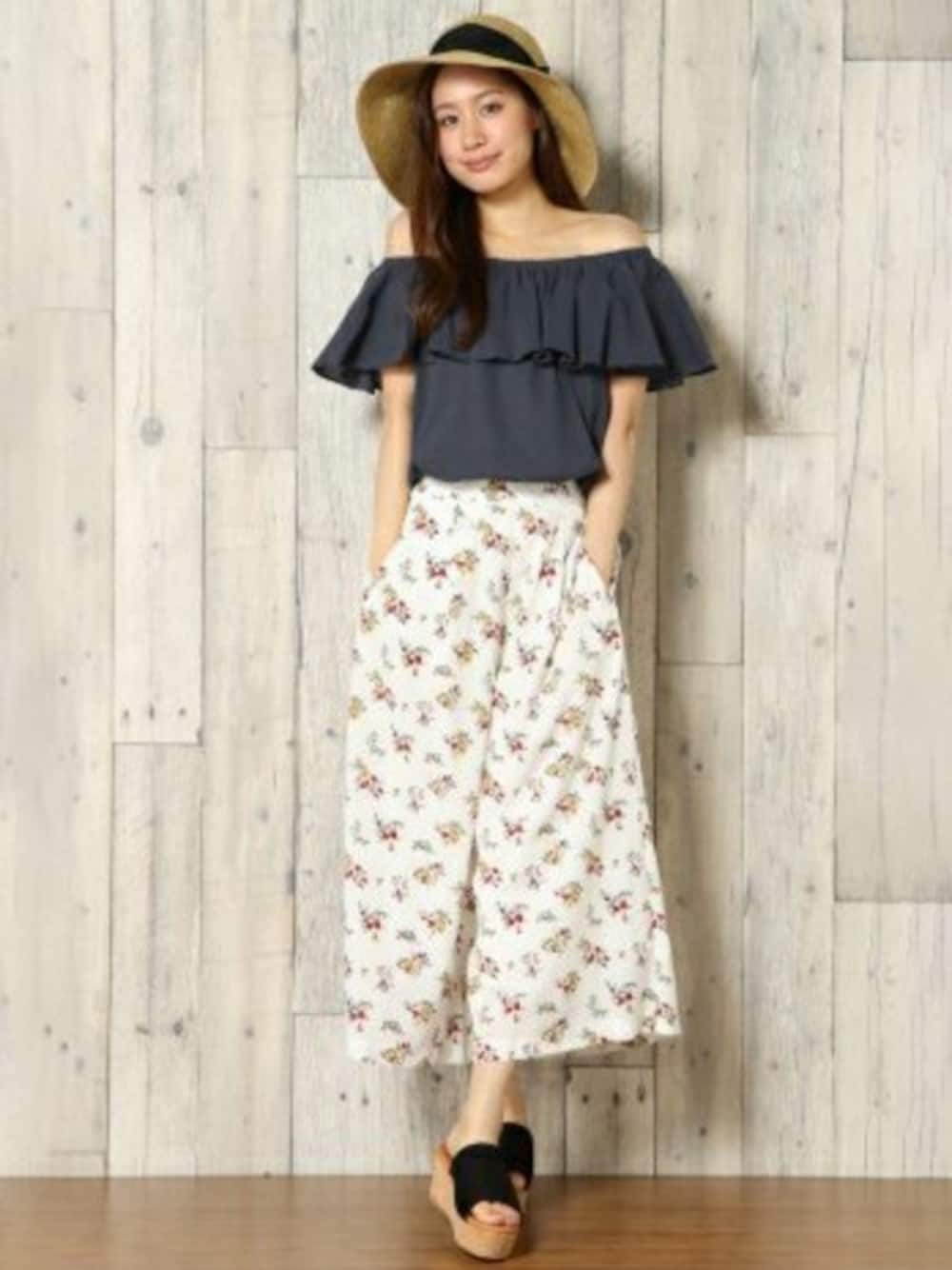 コックス公式オンラインストアECサイトモデルのシャツ/ブラウス「ノースリオフショルフリルブラウス」を使ったコーディネート
