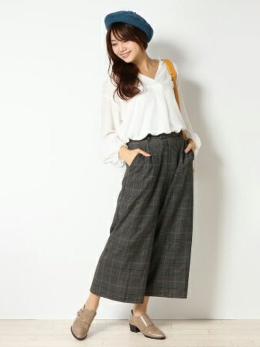 今年は英国トラッドを思わせるチェックパンツがトレンド入り♪ ウエストはあえてゴム使いにしないことでウエストをすっきりさせていて、ゴムでない分余分なボリュームが出ず、はいた時のシルエットがよりきれいに見えます。 Tシャツでカジュアルダウンしたり、フリルブラウスなど甘めのトップスを合わせても素敵。