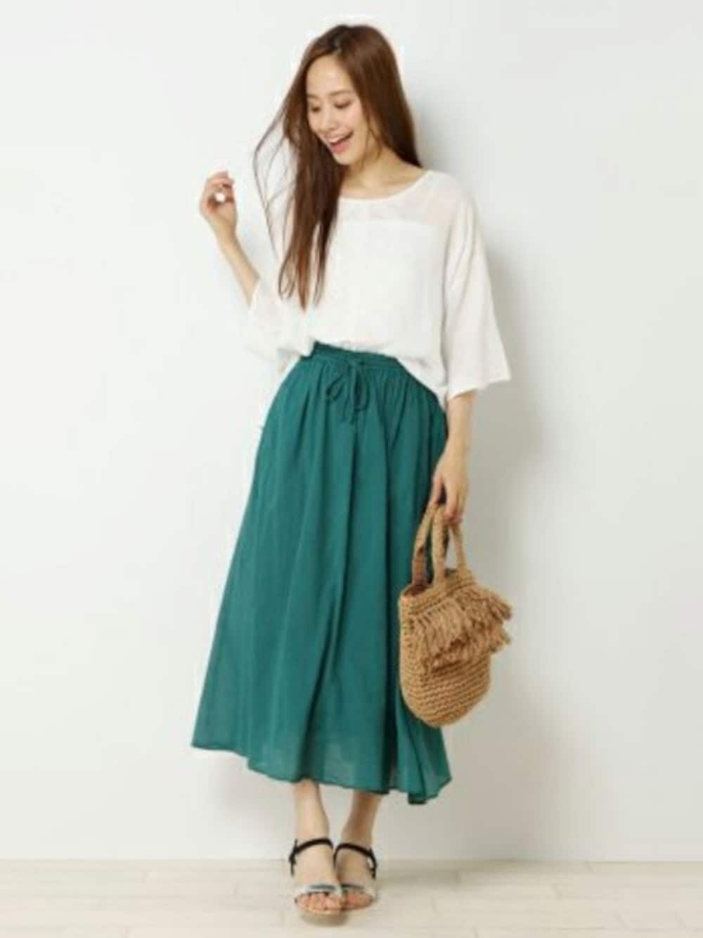風をはらんでやさしく広がるフレアスカート。 コーデをトーンアップするきれい色のスカートは、今年の注目トレンドです。 さらっとした気持ち良い肌触り、とっても軽やかな素材は暑い季節でも快適。 総ゴムのウエストでリラックスな履き心地です。 シンプルなTシャツで潔く大人コーデを楽しむのも良し、ロゴTやボーダーTでカジュアルMIXも良しと、着回しアレンジは無限大です。