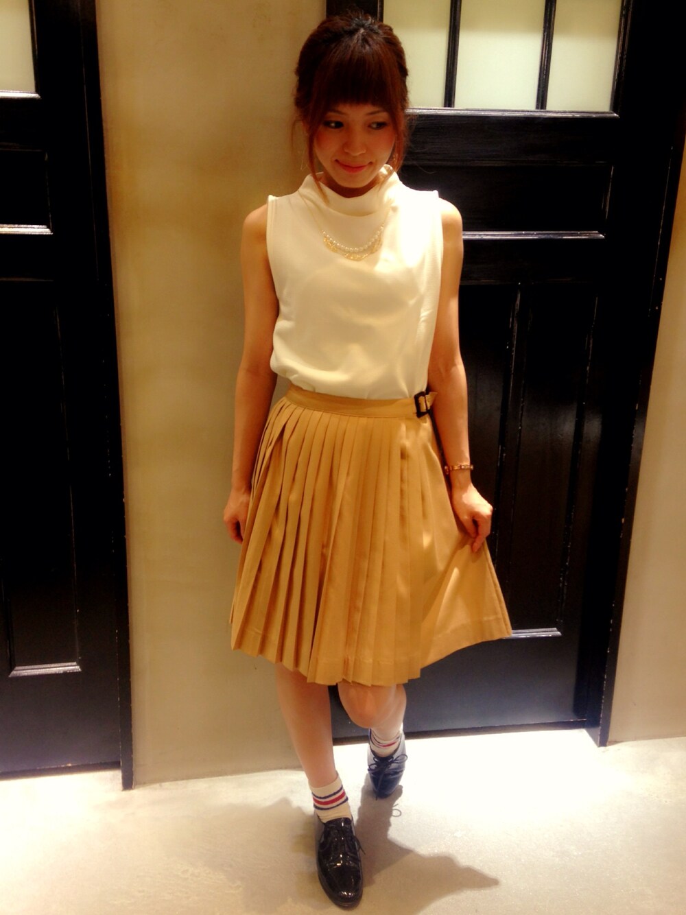 かくちゃんのスカート「ツイルプリーツ台形スカート」を使ったコーディネート