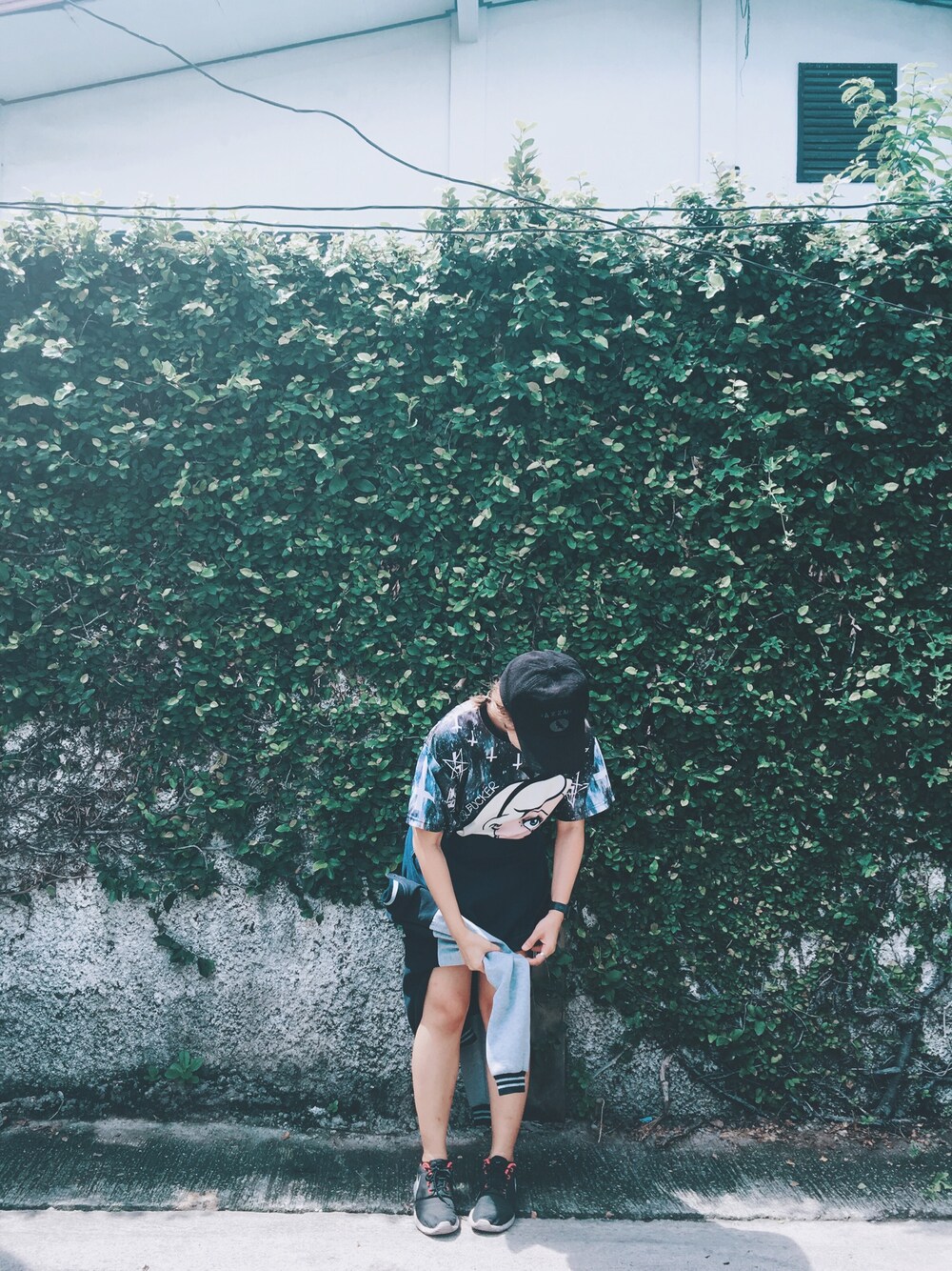 ブラック系のスニーカーを着用したレディースの秋コーディネートの1枚目の写真