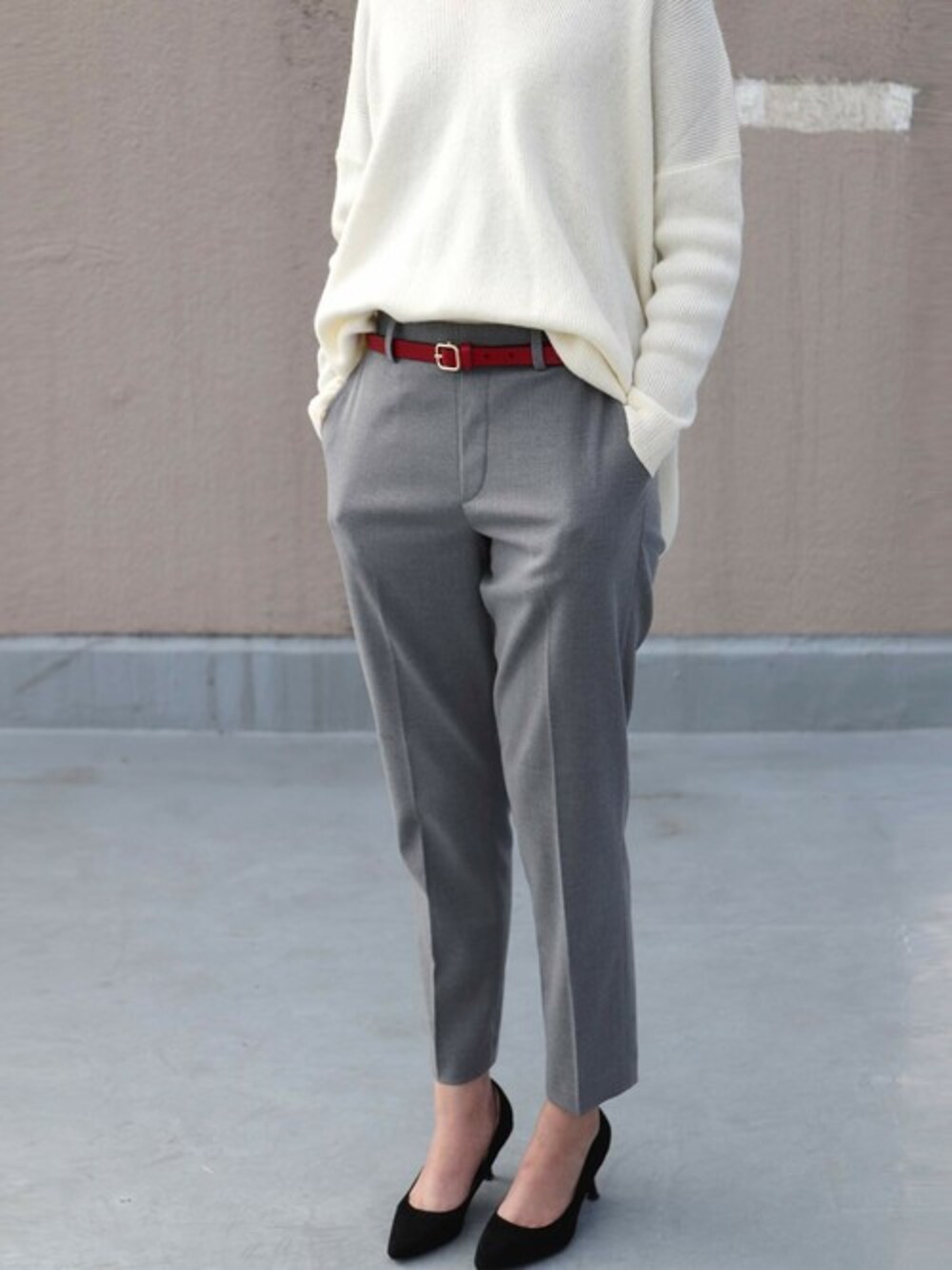 FLORIST(フローリスト)のベルト「牛革細身スクエアバックルレザーベルト」を使ったコーディネート