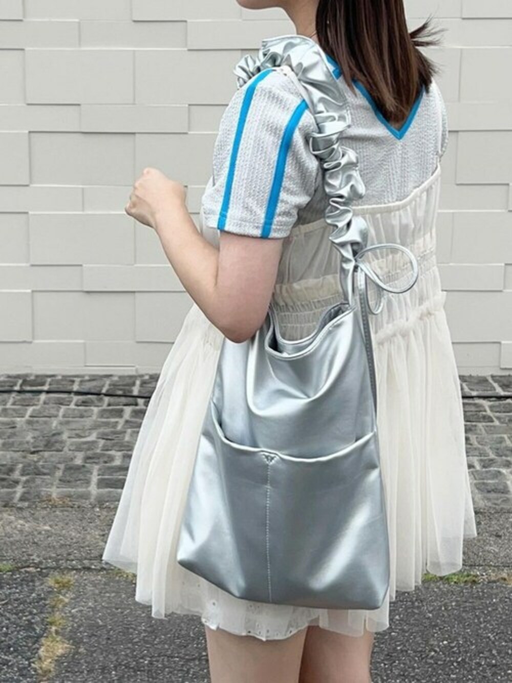 FLORIST(フローリスト)のショルダーバッグ「【2way】韓国ファッション大容量で軽いスクエアラッフルギャザーレザーショルダーバッグリボン / A4収納OK」を使ったコーディネート