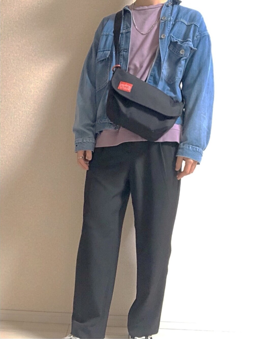 Gジャン×ワイドパンツ✨ パープルとブルーの絶妙なバランスがめっちゃくちゃ好きでハマってます!! 騙されたと思って、ぜひ試してみてください🙏