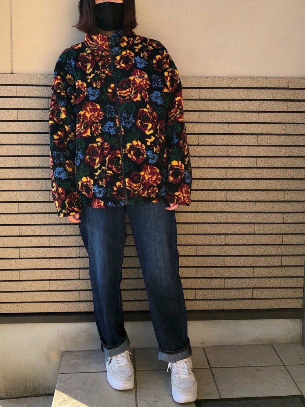 吉井紗彩(X-girl名古屋(名古屋パルコ))のブルゾン「FLORAL STAND COLLAR BOA JACKET」を使ったコーディネート