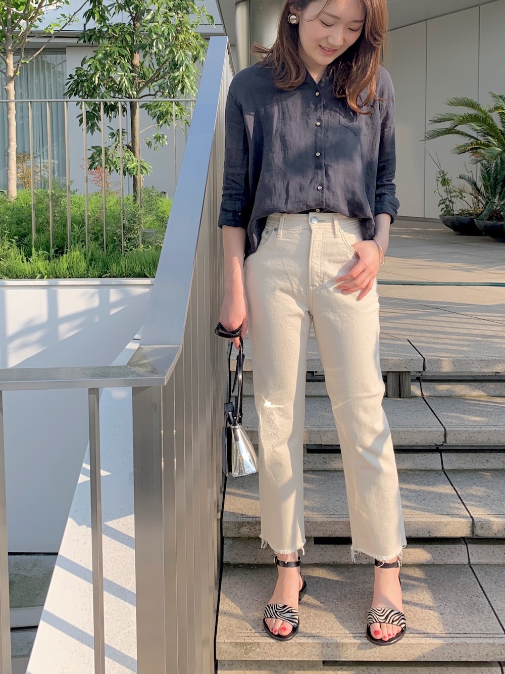 IWAMOTOのシャツ/ブラウス「ラミーバックボタンシャツ」を使ったコーディネート