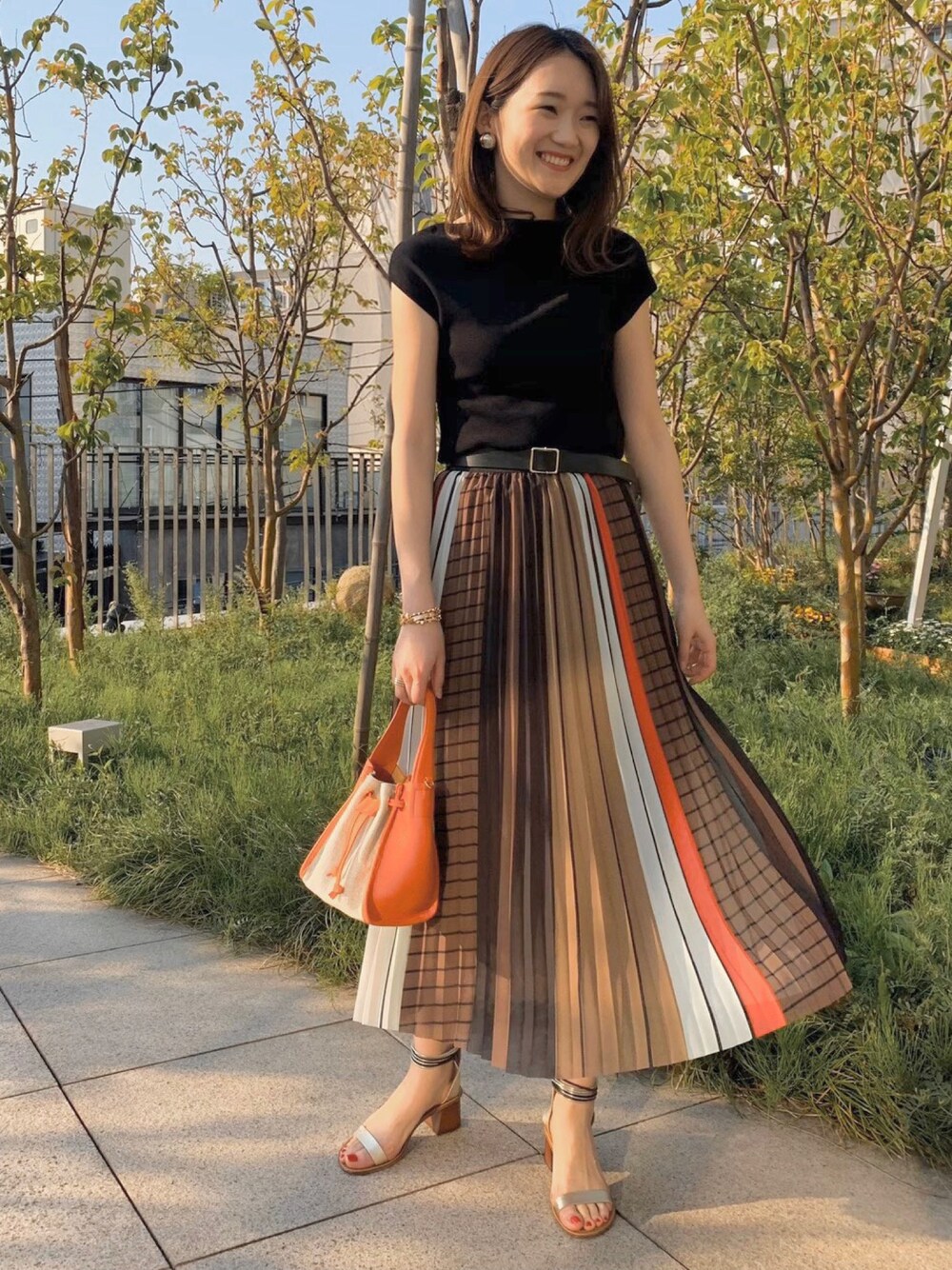 パッと目を引く主役級プリーツスカート🧡 instagram:@ldmoe
