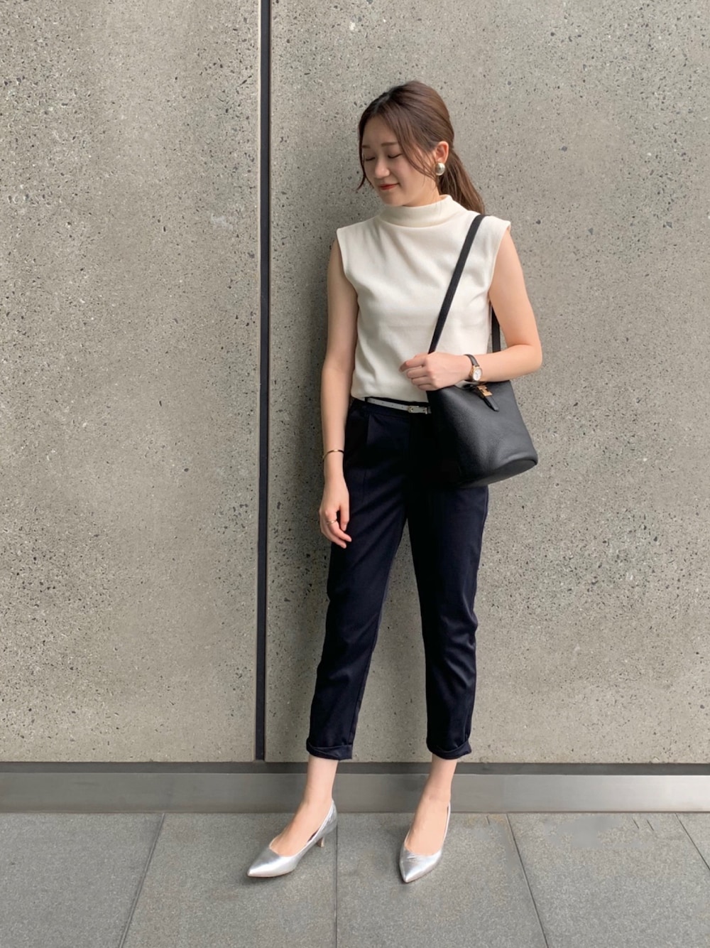 通勤コーデ! 小顔に見えるボトルネックニットと loungedress定番の マイナス3キロパンツでスタイルアップ💪🏻 instagram:@ldmoe