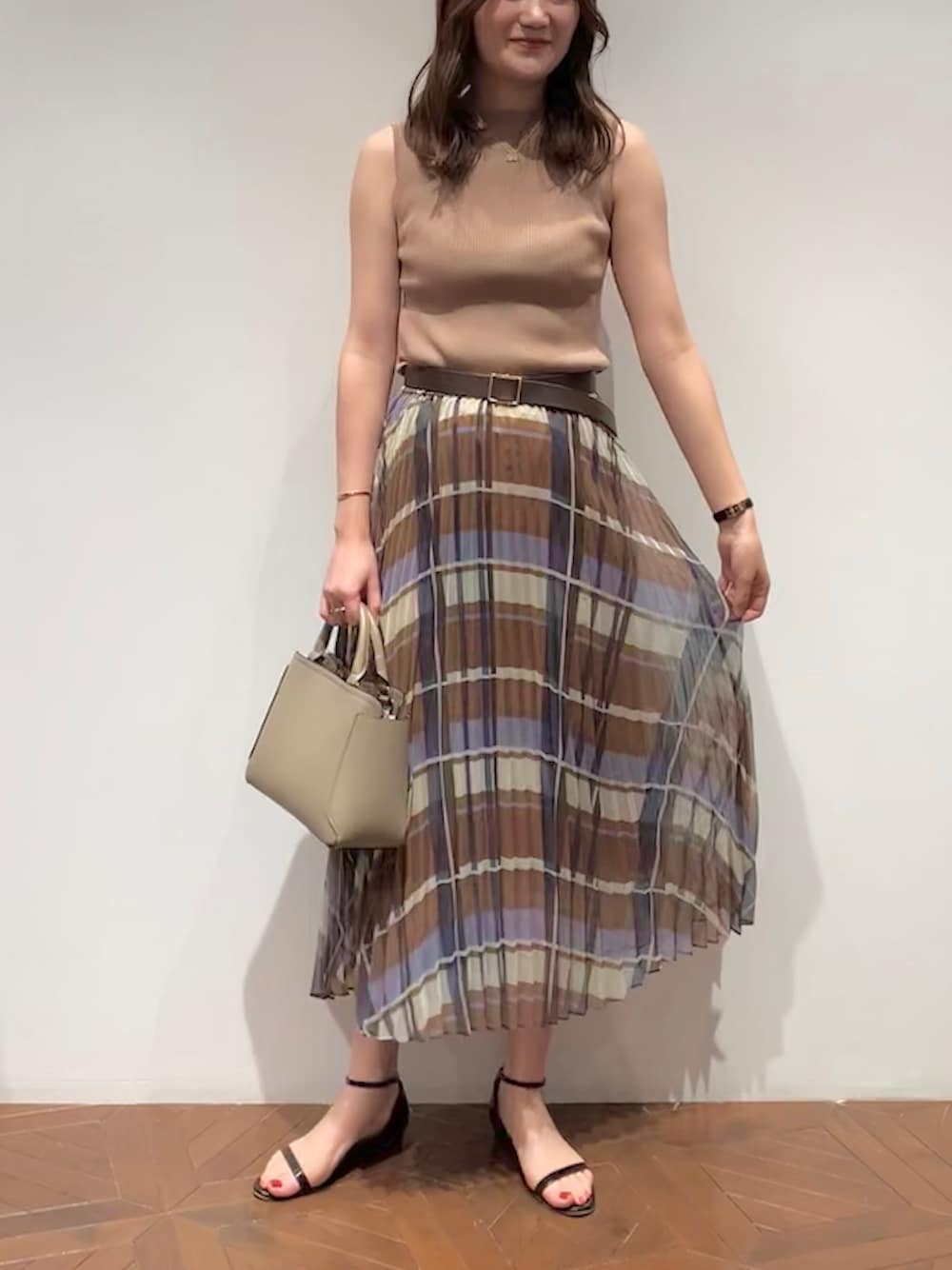 夏のベージュワントーンコーデ🐻 チェックにブルーが入ってたり、涼しげな素材感が◎ instagram:@ldmoe