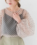 シースルーのブラウスなら今時期から秋まで長く使えそう🐩🤍 ベージュ地に黒のドットがかわいい🤍 instagram:@ldmoe