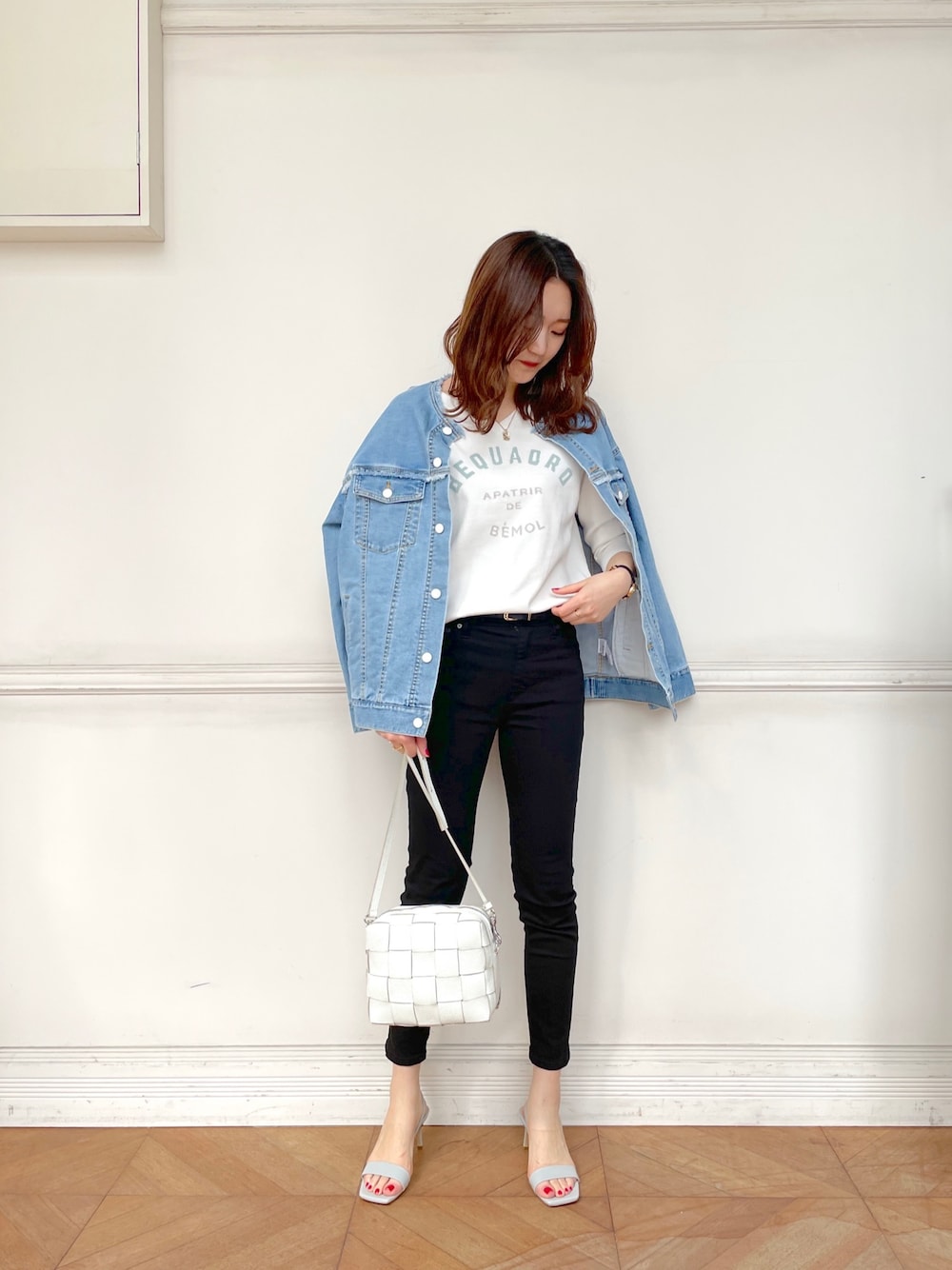 ブルーとホワイトの爽やかコーデ🦋♡ デニムジャケットも大人カジュアルに着たい! instagram:@ldmoe