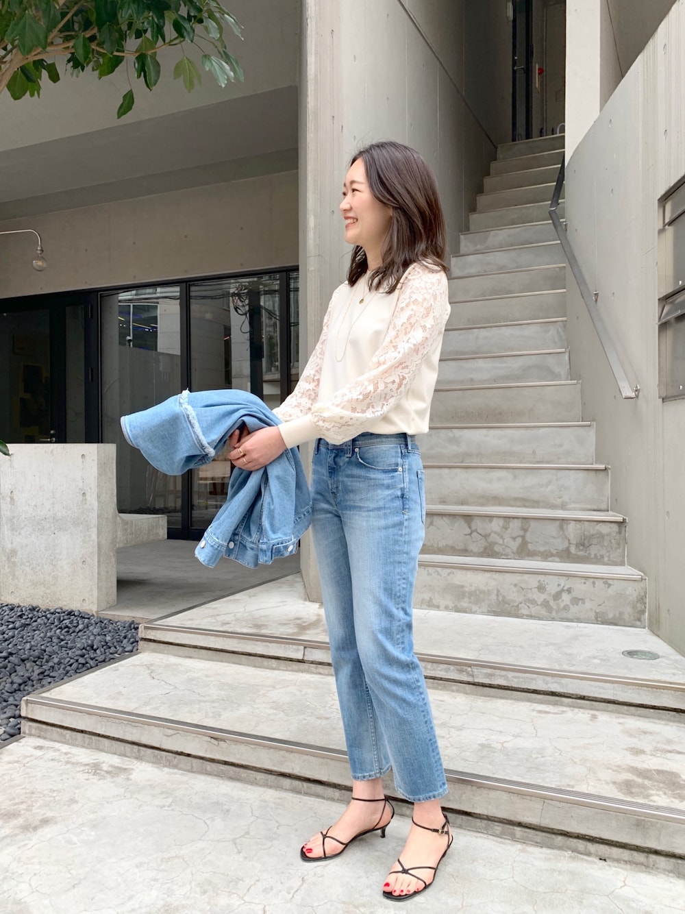 IWAMOTOのニット/セーター「袖レースニット」を使ったコーディネート