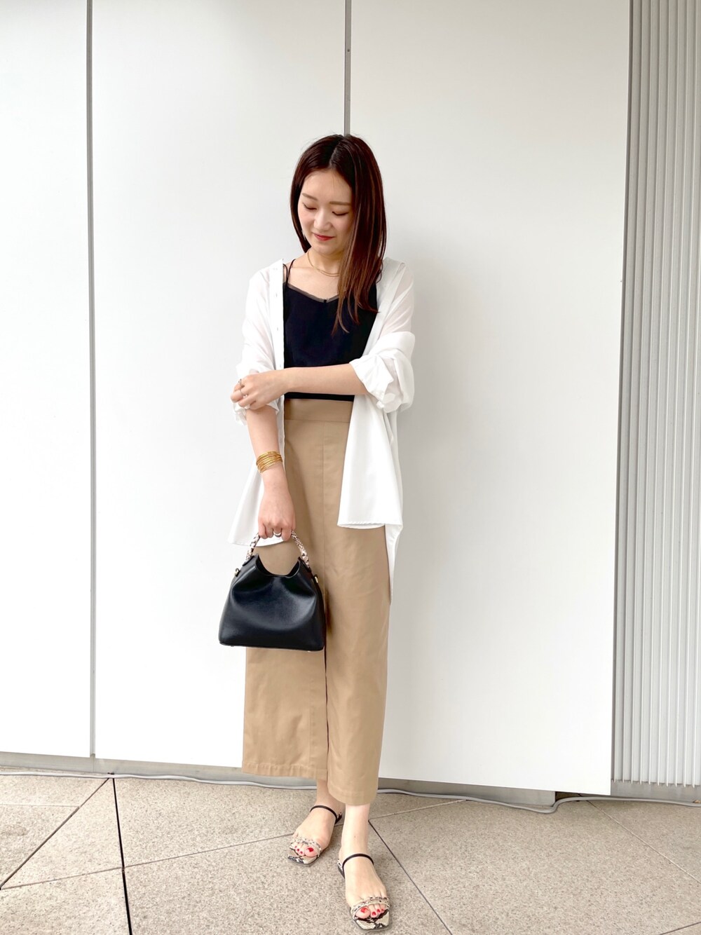 オーバーシャツのインナーをキャミソールにすることでロングスカート合わせでも抜け感のあるコーデにしました🖤 これでお出かけに行きたい☕️ instagram:@ldmoe