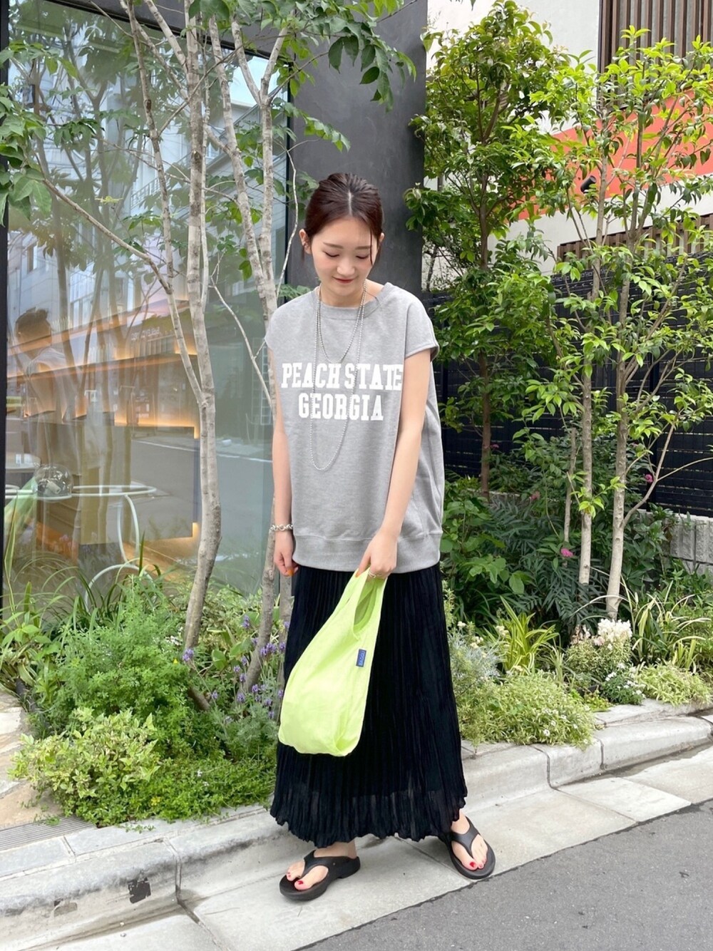 大人気裏毛プルオーバーをロングスカートと合わせて今っぽく💫 これまた今年大人気のoofosと合わせて夏のリラクシーコーデ🌴 instagram:@ldmoe