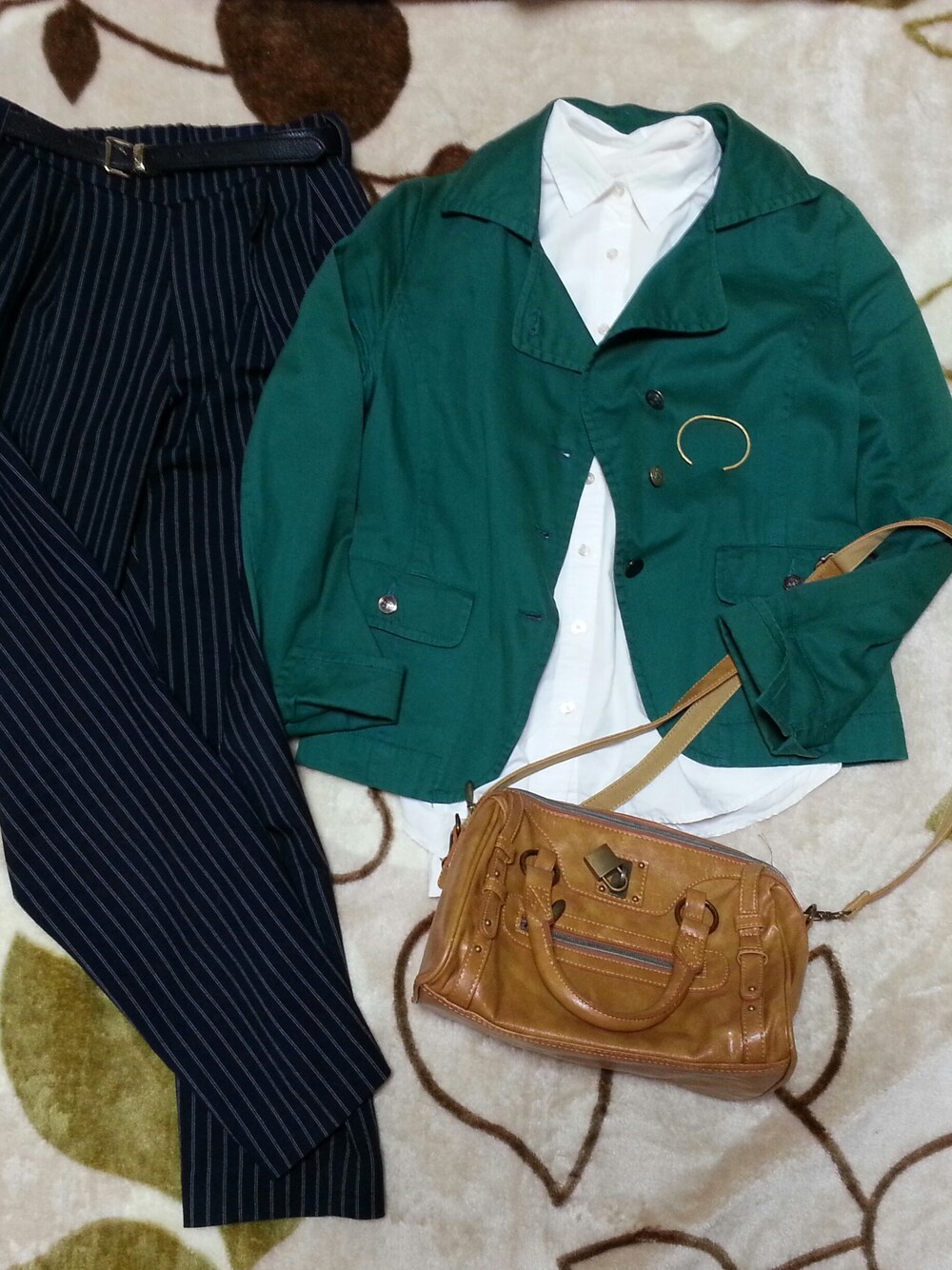通勤ファッションに愛用のグリーンジャケット足したら意外といけた◎