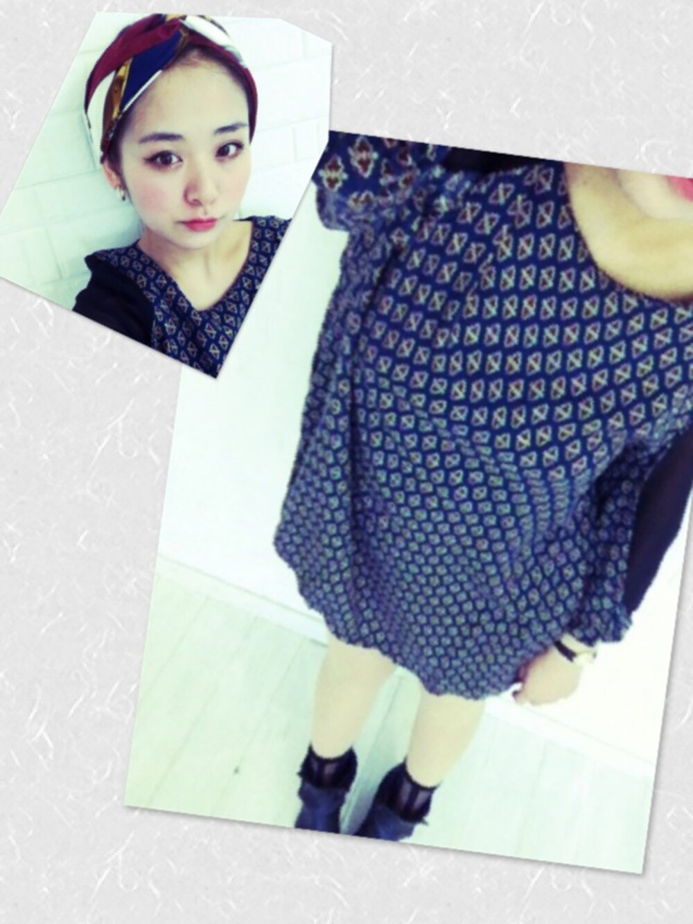 ワンピース:used ショートパンツ:ZARA ブーツ:インポート スカーフ:used