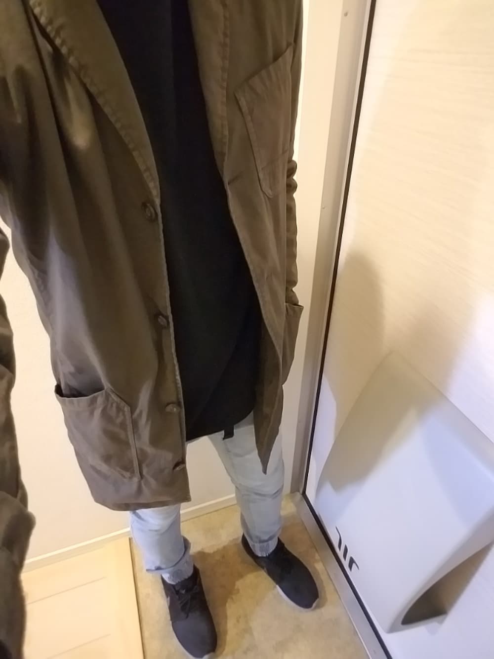 初投稿になります 4/7(土)曇り 気温22/15度 今日は風が強いのでカーキコートを中心にコーディネート。 基本シンプルコーデです👕👖 マイペースに投稿していますので、フォローお願いします☺