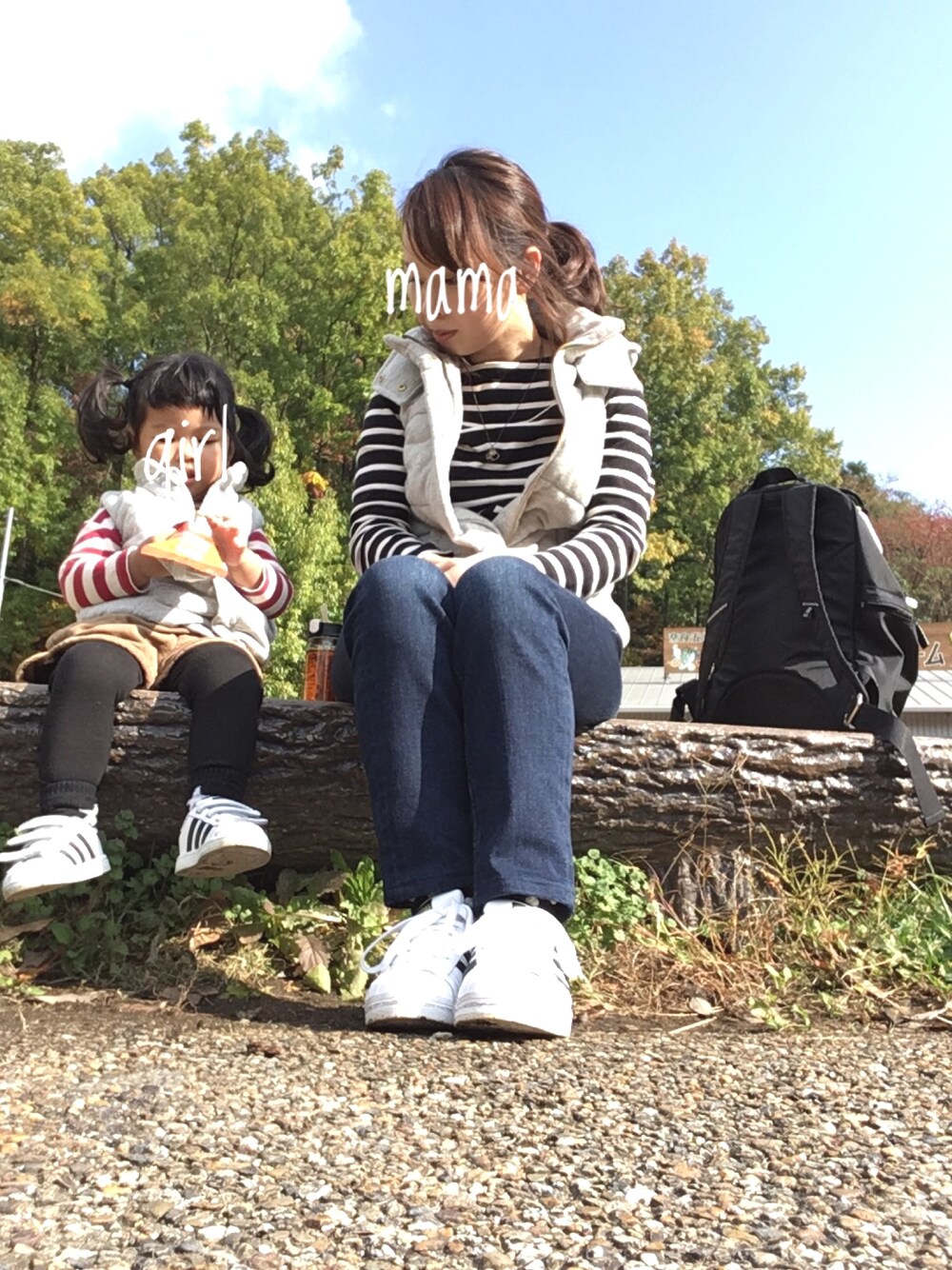 親子コーデ☺︎⭐️☺︎ ボーダー×ベスト♡ 公園で歩き回った後に 休憩おやつタイム☺︎