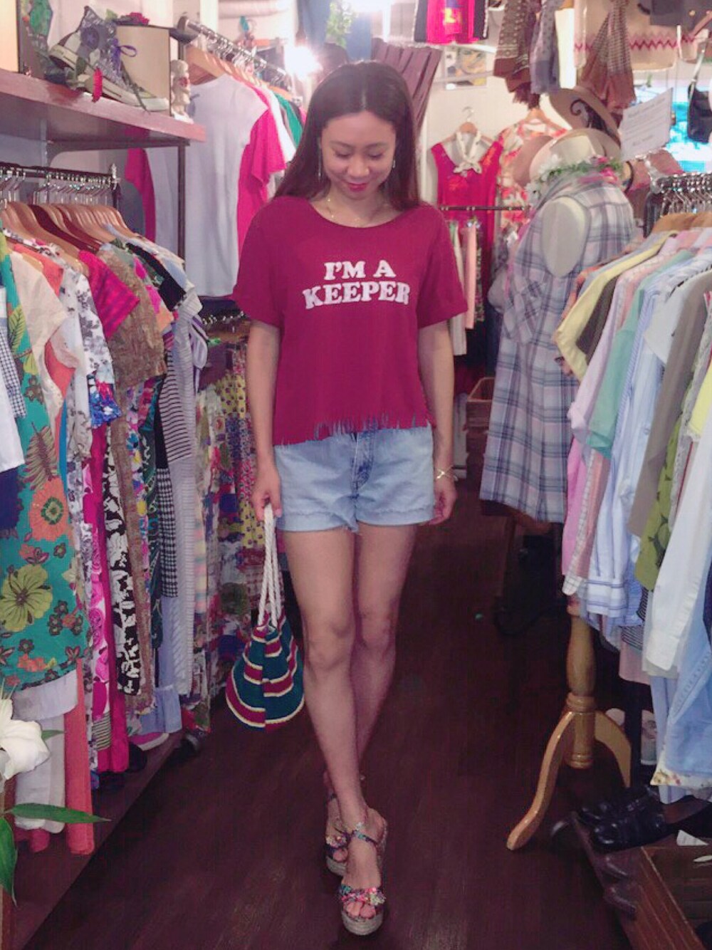 🎼Nakameguro 中目黒 Staff ARISA ♬T Shirt.....VINTAGE ♬Levis Denim short pant......VINTAGE ♬Sandals......VINTAGE ♬Bag......ORIGINAL VintageTシャツをフリンジリメイクした1枚👕 Levisのデニムショートパンツ、1枚持ってれば夏は乗り切れるハズ🌻 Rema-Kのパイル地ストライプトートは海のおともに👙 厚底サンダル足長効果半端ないっス👌🏻 Instagram-----leahkleahk Blog/Onlinshop-----http://leah-k.jp
