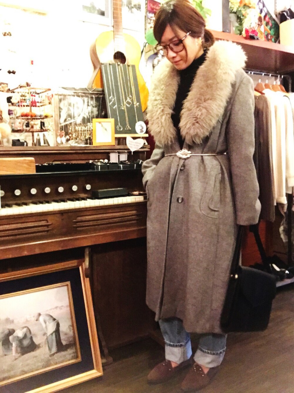 🎼Nakameguro 中目黒 Staff 齋藤 ♬fur coat ♬Levi's denim pants ♬Studs shoes ♬Leather bag ♬Belt 中目黒店スタッフ齋藤です。 初めてのゴールデン街は楽しかったです。素敵なネコ氏を膝に乗せながら頂く食事とお酒が最高に美味しくてハマりそうです。 ・ファーが流行してるとの事で、Leah-Kにもファーアイテムが色々と入りました。ボリュームあるファー襟コート、ウチのネコより毛量あります。これマフラー要らず。非常に暖かい。そして大人レディになった気分。グレーなのがso good。銀座歩きたい。 ・あんまりカッチカチにしたくなかったので、デニムでカジュアルダウン。けどカジュアルしすぎないようにウエストマーク。グレーのコートだからシルバーが馴染みます。 ・こういうコートの時はやっぱ本革BAGがいいのだ〜。 ーーーーーーーーーーーーーーーーー Leah-K Instagram : leahkleahk Blog/Onlinshop : http://leah-k.jp