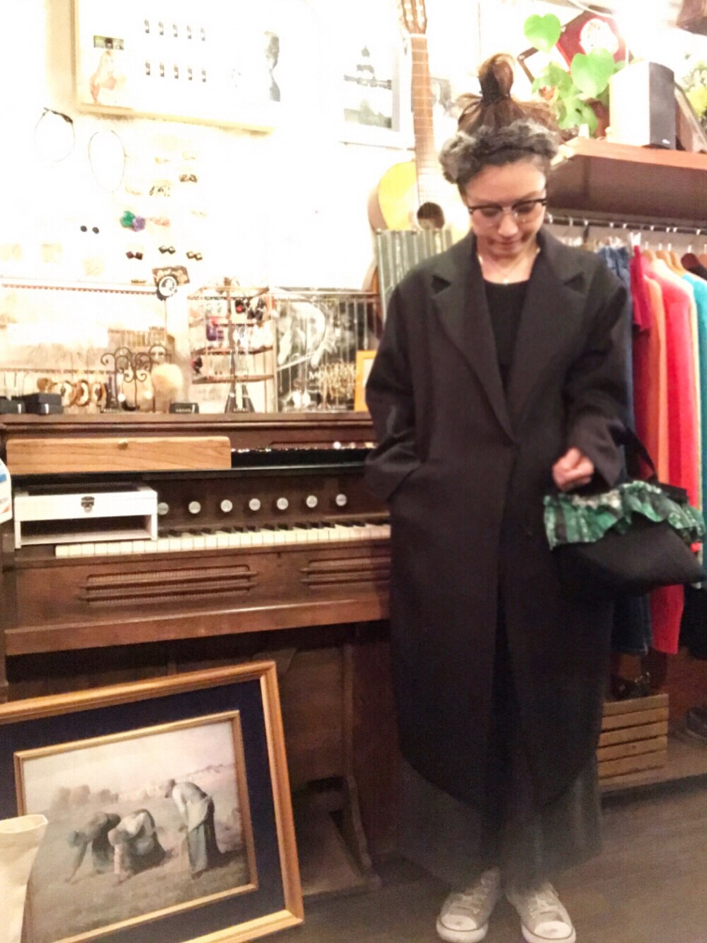 🎼Nakameguro 中目黒 Staff 齋藤 ♬Coat ♬Wool wide pants ♬Fur stole ♬Rema-K tote bag 齋藤です。 明日は母の誕生日。何か欲しいものあるかと尋ねると「猫カフェに行きたい」と言う母。可愛いなぁ。 ・セレクトのワイドパンツ、極太でナイスなシルエットです。ヘリンボーンになっててきちんと感もあり、ヴィンテージライクな雰囲気もso goodです。白湯飲んでそう。 ・おそらく首回りに使うのであろうファー小物がヘアバンドとして私の頭にジャストなサイズだったのでこうしました。 スニーカーは私物ALL STAR。ゴムソールはいつも爪先から汚れていく…。 ーーーーーーーーーーーーーーーーー Leah-K Instagram : leahkleahk Blog/Onlinshop : http://leah-k.jp