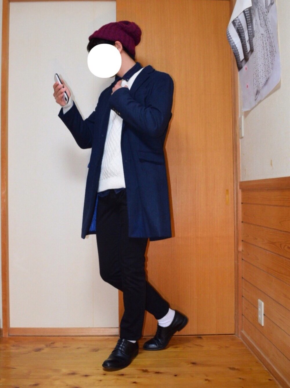 ネイビーチェスター使った綺麗めなやつ。 ニットの丈感てもうちょい長いほうがいいのかな、どーなんだろう、、 ワインカラーのニット帽被りたくてそれ中心にしました。 以上。