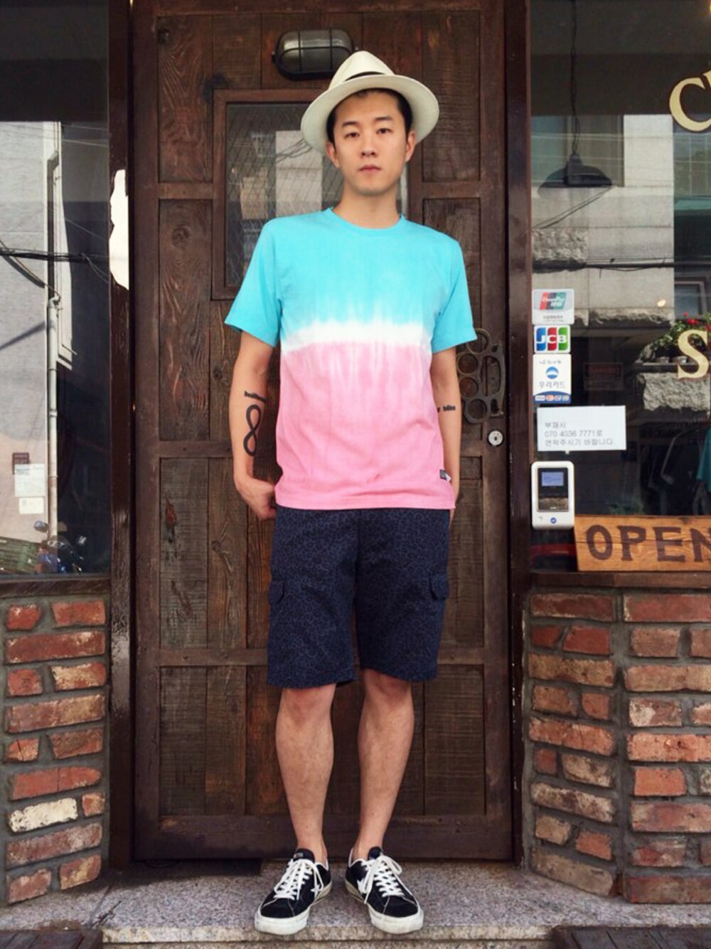 [Daily] TOP : L/class tie dye tee BOTTOM : Leopard cargo shorts navy HEADGEAR : LT Seoul hat ivory
